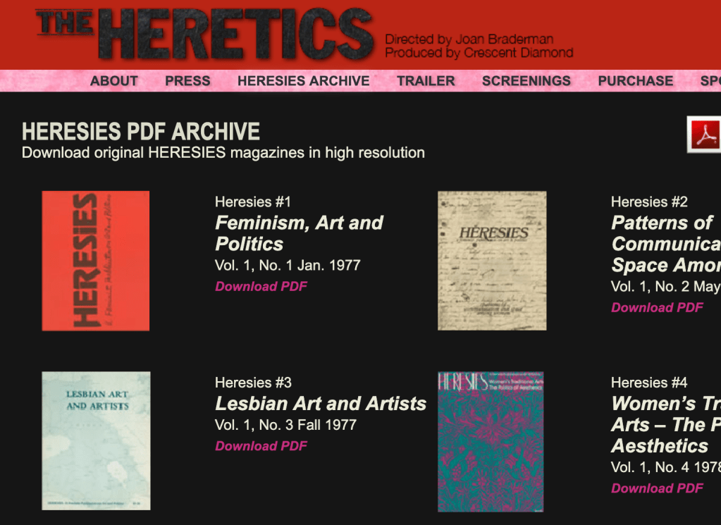 Heresies is an idea-oriented journal devoted to the examination of art and politics from a feminist perspective, publicated between 1977 and 1993.