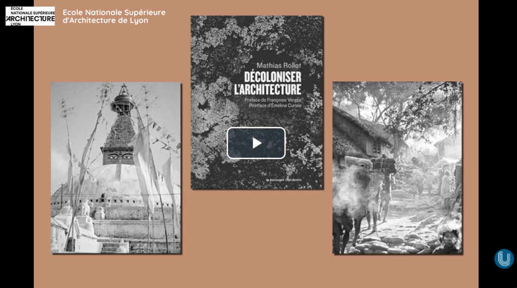 Conférence de théorie critique architecturale, donnée par Mathias Rollot à l’ENSA Lyon à l’occasion de la parution de l’ouvrage Décoloniser l’architecture. Mars 2024.